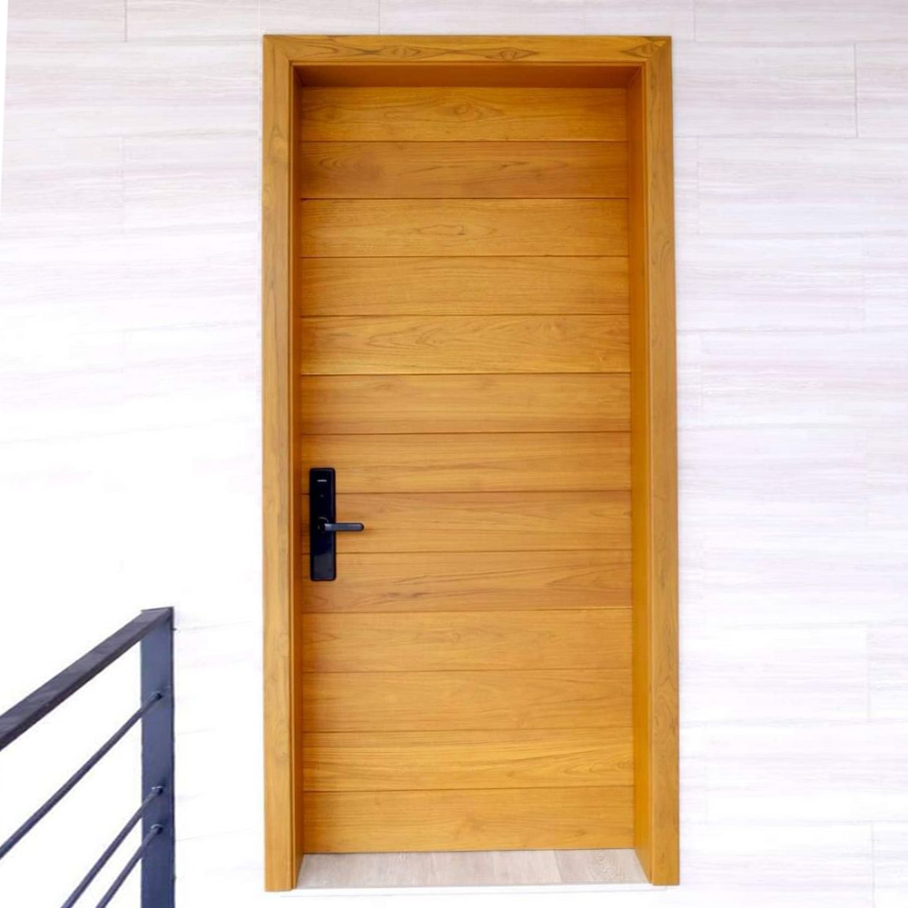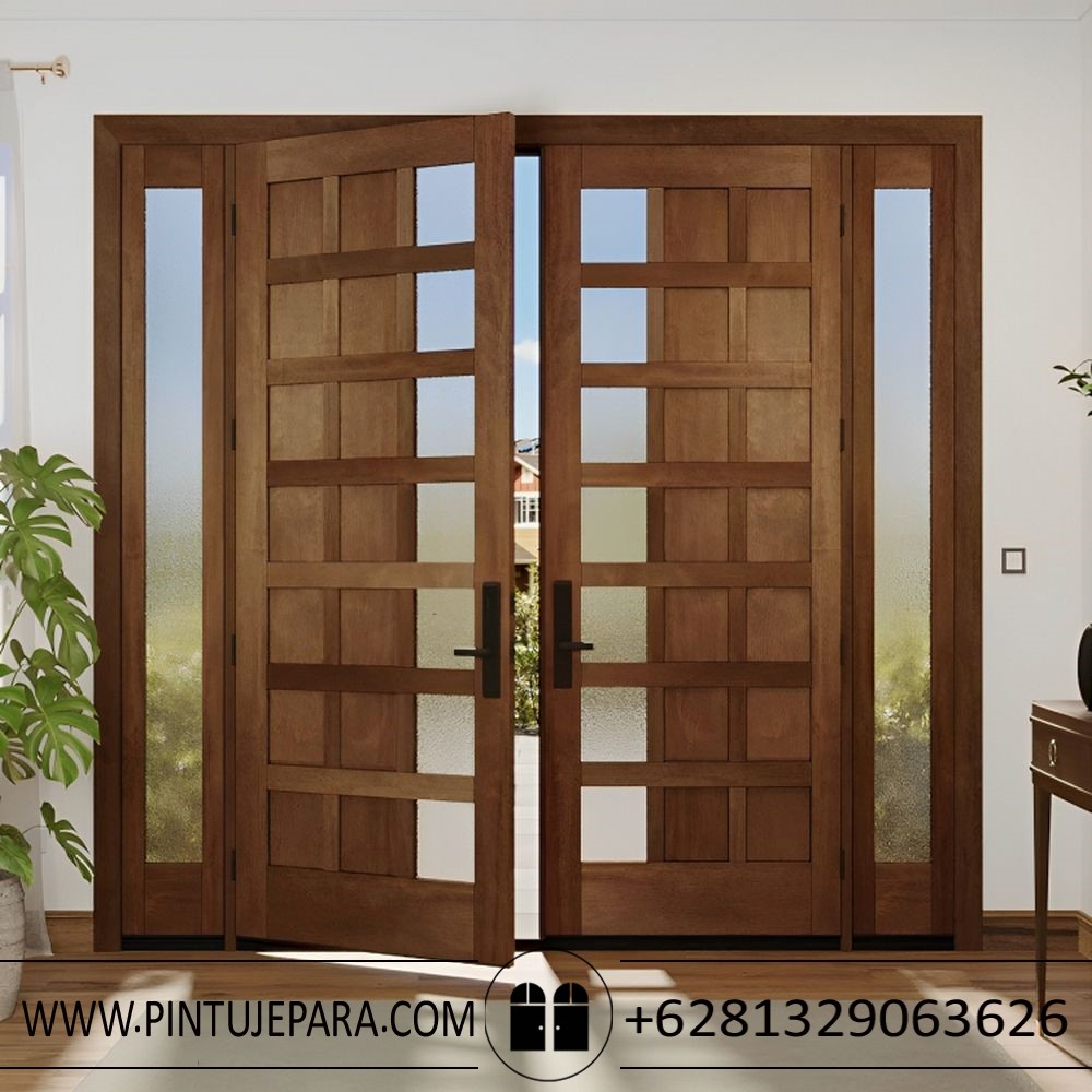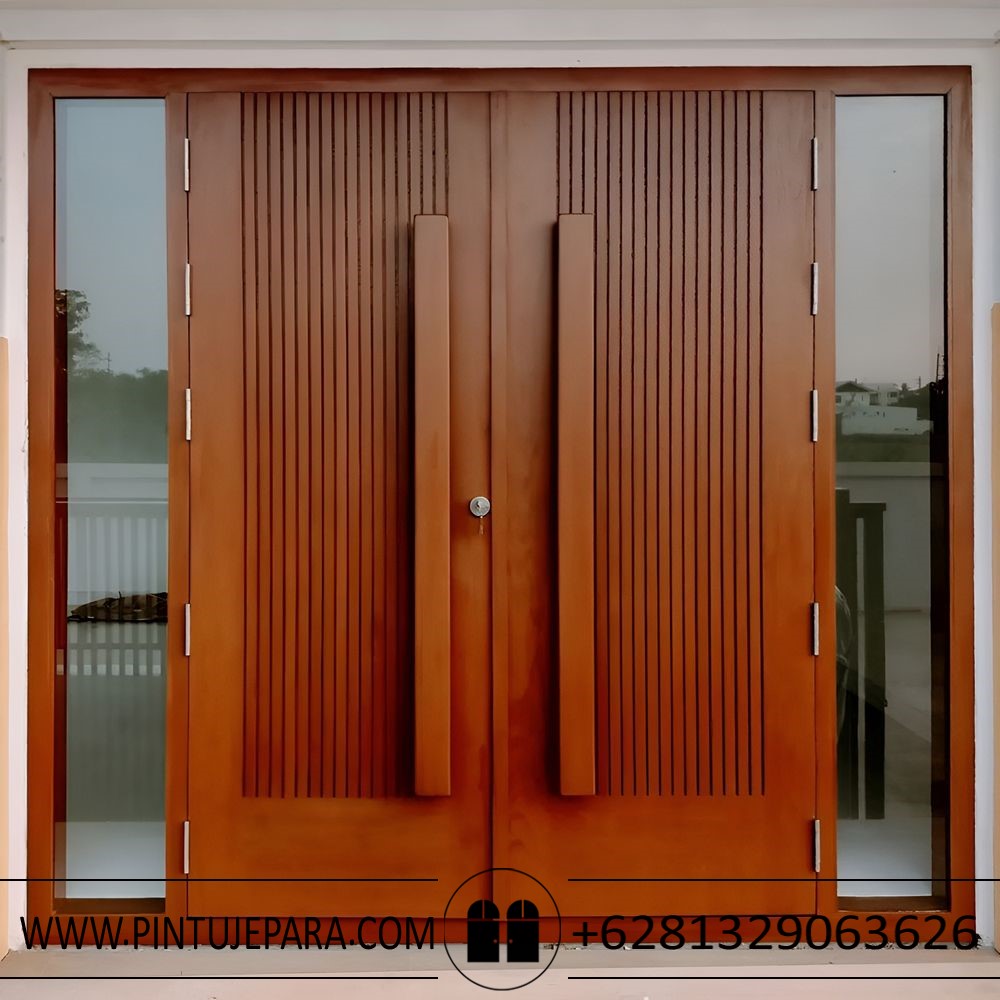 Pintu rumah dalam gaya desain Japandi menekankan kesederhanaan dan kualitas. Kayu jati Jepara, dengan tekstur dan warna alaminya, menjadi pilihan yang tepat. Kayu jati Jepara dikenal karena kekuatannya dan daya tahan yang luar biasa, sehingga Anda dapat yakin bahwa pintu rumah Anda akan sangat awet dan dapat di gunakan untk jangka waktu lama.