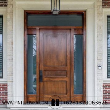 Pintu utama kayu jati jepara desain klasik dengan kombinasi jendela kanan kiri dan atas, cocok untuk pintu rumah yang begaya arsitektur klasik modern, dengan menggunakan profuk Pintu rumah 1 daun klasik kayu jati jendela ganda PJ-38 yang di lengkapi jendela kaca maka anda akan memiliki pechayaan alami ke dalam rumah.